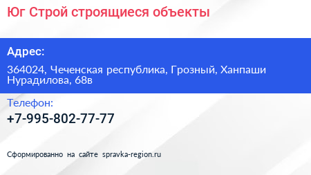 Юг-Строй, строящиеся объекты по адресу 364024, Чеченская республика, Грозный, Ханпаши Нурадилова, 68в в дальнейшем Организация, размещена в следующих категориях: