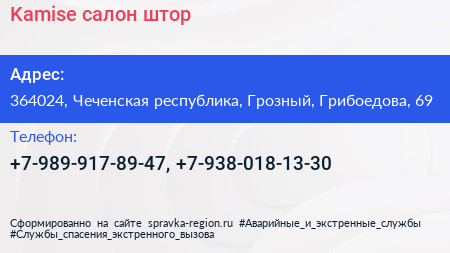 Kamise, салон штор по адресу 364024, Чеченская республика, Грозный, Грибоедова, 69 в дальнейшем Организация, размещена в следующих категориях: