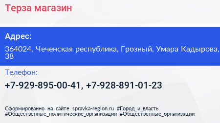 Терза, магазин по адресу 364024, Чеченская республика, Грозный, Умара Кадырова, 38 в дальнейшем Организация, размещена в следующих категориях: