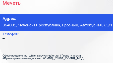 Мечеть по адресу 364001, Чеченская республика, Грозный, Автобусная, 63/1 в дальнейшем Организация, размещена в следующих категориях:
