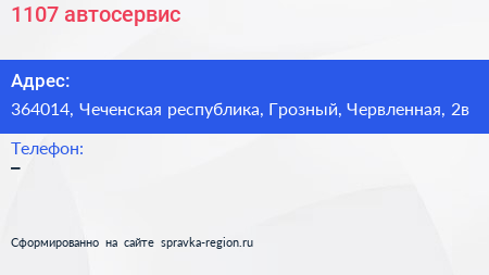 1107, автосервис по адресу 364014, Чеченская республика, Грозный, Червленная, 2в в дальнейшем Организация, размещена в следующих категориях: