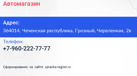 Автомагазин по адресу 364014, Чеченская республика, Грозный, Червленная, 2в в дальнейшем Организация, размещена в следующих категориях: