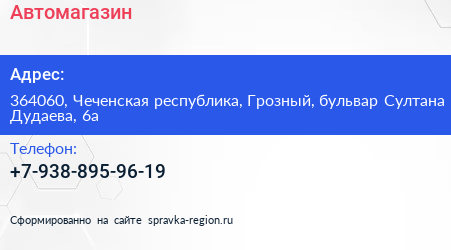 Автомагазин по адресу 364060, Чеченская республика, Грозный, бульвар Султана Дудаева, 6а в дальнейшем Организация, размещена в следующих категориях: