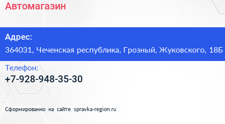 Автомагазин по адресу 364031, Чеченская республика, Грозный, Жуковского, 18Б в дальнейшем Организация, размещена в следующих категориях: