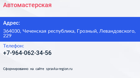 Автомастерская по адресу 364030, Чеченская республика, Грозный, Левандовского, 229 в дальнейшем Организация, размещена в следующих категориях: