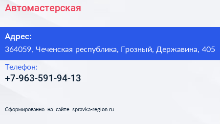 Автомастерская по адресу 364059, Чеченская республика, Грозный, Державина, 405 в дальнейшем Организация, размещена в следующих категориях: