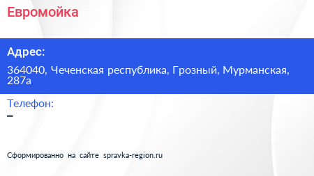 Евромойка по адресу 364040, Чеченская республика, Грозный, Мурманская, 287а в дальнейшем Организация, размещена в следующих категориях: