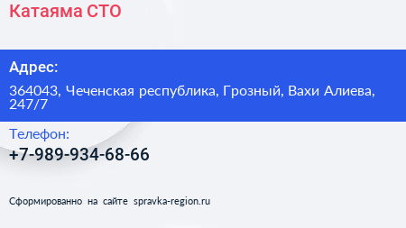 Катаяма, СТО по адресу 364043, Чеченская республика, Грозный, Вахи Алиева, 247/7 в дальнейшем Организация, размещена в следующих категориях: