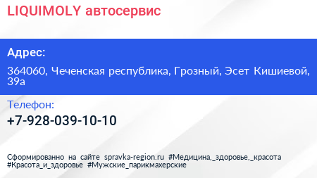 LIQUIMOLY, автосервис по адресу 364060, Чеченская республика, Грозный, Эсет Кишиевой, 39а в дальнейшем Организация, размещена в следующих категориях:
