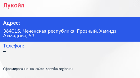 Лукойл по адресу 364015, Чеченская республика, Грозный, Хамида Ахмадова, 53 в дальнейшем Организация, размещена в следующих категориях: