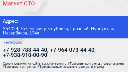 Магнит, СТО по адресу 364024, Чеченская республика, Грозный, Нурсултана Назарбаева, 134а в дальнейшем Организация, размещена в следующих категориях: