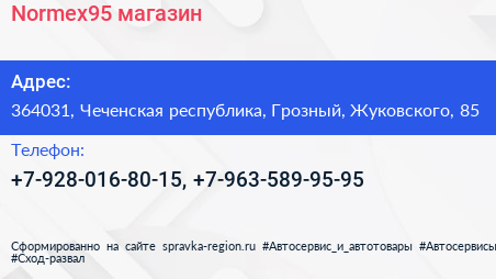 Normex95, магазин по адресу 364031, Чеченская республика, Грозный, Жуковского, 85 в дальнейшем Организация, размещена в следующих категориях: