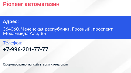 Pioneer, автомагазин по адресу 364060, Чеченская республика, Грозный, проспект Мохаммеда Али, 8Б в дальнейшем Организация, размещена в следующих категориях:
