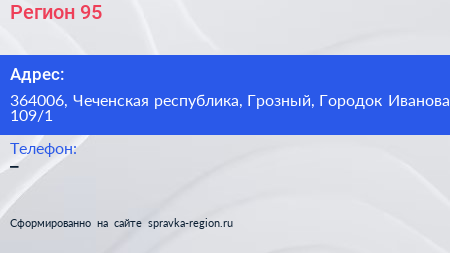 Регион 95 по адресу 364006, Чеченская республика, Грозный, Городок Иванова, 109/1 в дальнейшем Организация, размещена в следующих категориях: