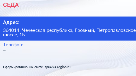 СЕДА по адресу 364014, Чеченская республика, Грозный, Петропавловское шоссе, 1Б в дальнейшем Организация, размещена в следующих категориях: