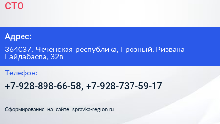 СТО по адресу 364037, Чеченская республика, Грозный, Ризвана Гайдабаева, 32в в дальнейшем Организация, размещена в следующих категориях: