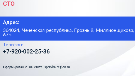 СТО по адресу 364024, Чеченская республика, Грозный, Миллионщикова, 67Б в дальнейшем Организация, размещена в следующих категориях: