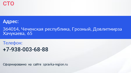 СТО по адресу 364014, Чеченская республика, Грозный, Довлитмирза Хачукаева, 65 в дальнейшем Организация, размещена в следующих категориях: