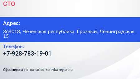 СТО по адресу 364018, Чеченская республика, Грозный, Ленинградская, 15 в дальнейшем Организация, размещена в следующих категориях: