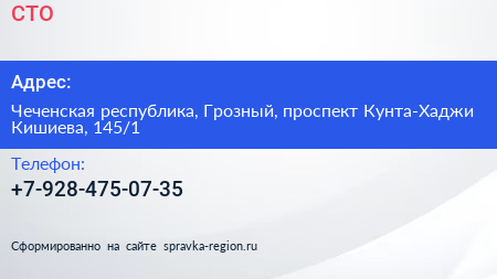 СТО по адресу Чеченская республика, Грозный, проспект Кунта-Хаджи Кишиева, 145/1 в дальнейшем Организация, размещена в следующих категориях: