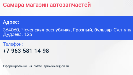 Самара, магазин автозапчастей по адресу 364060, Чеченская республика, Грозный, бульвар Султана Дудаева, 12а в дальнейшем Организация, размещена в следующих категориях: