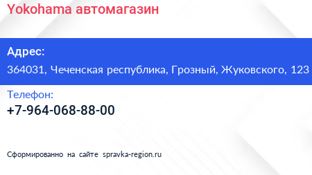 Yokohama, автомагазин по адресу 364031, Чеченская республика, Грозный, Жуковского, 123 в дальнейшем Организация, размещена в следующих категориях: