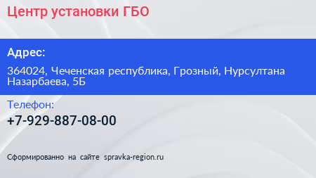 Центр установки ГБО по адресу 364024, Чеченская республика, Грозный, Нурсултана Назарбаева, 5Б в дальнейшем Организация, размещена в следующих категориях: