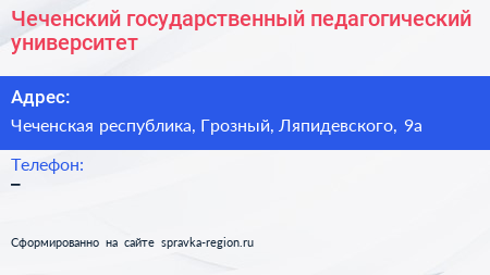 Чеченский государственный педагогический университет по адресу Чеченская республика, Грозный, Ляпидевского, 9а в дальнейшем Организация, размещена в следующих категориях: