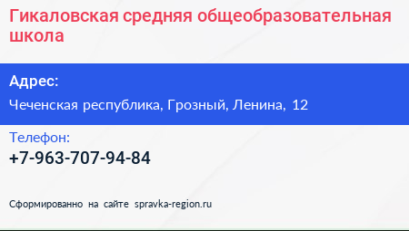 Гикаловская средняя общеобразовательная школа по адресу Чеченская республика, Грозный, Ленина, 12 в дальнейшем Организация, размещена в следующих категориях: