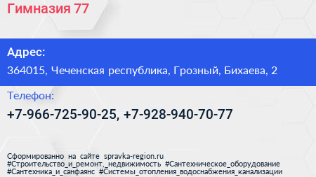 Гимназия №77 по адресу 364015, Чеченская республика, Грозный, Бихаева, 2 в дальнейшем Организация, размещена в следующих категориях: