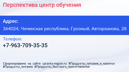 Перспектива, центр обучения по адресу 364024, Чеченская республика, Грозный, Авторханова, 28 в дальнейшем Организация, размещена в следующих категориях: