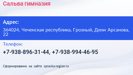 Сальва, гимназия по адресу 364024, Чеченская республика, Грозный, Дени Арсанова, 22 в дальнейшем Организация, размещена в следующих категориях: