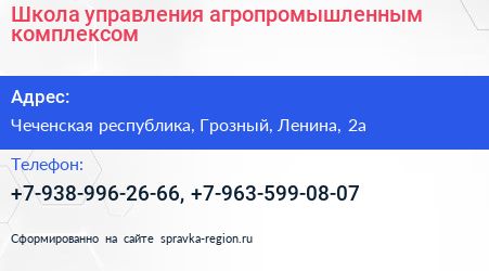 Школа управления агропромышленным комплексом по адресу Чеченская республика, Грозный, Ленина, 2а в дальнейшем Организация, размещена в следующих категориях: