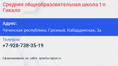 Средняя общеобразовательная школа №1 п. Гикало по адресу Чеченская республика, Грозный, Кабардинская, 3а в дальнейшем Организация, размещена в следующих категориях: