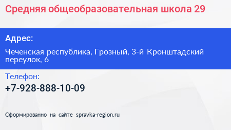 Средняя общеобразовательная школа №29 по адресу Чеченская республика, Грозный, 3-й Кронштадский переулок, 6 в дальнейшем Организация, размещена в следующих категориях: