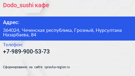 Dodo_sushi, кафе по адресу 364024, Чеченская республика, Грозный, Нурсултана Назарбаева, 84 в дальнейшем Организация, размещена в следующих категориях:
