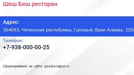 Шеш-Беш, ресторан по адресу 364043, Чеченская республика, Грозный, Вахи Алиева, 103а в дальнейшем Организация, размещена в следующих категориях: