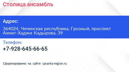 Столица, ансамбль по адресу 364024, Чеченская республика, Грозный, проспект Ахмат-Хаджи Кадырова, 39 в дальнейшем Организация, размещена в следующих категориях: