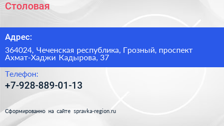 Столовая по адресу 364024, Чеченская республика, Грозный, проспект Ахмат-Хаджи Кадырова, 37 в дальнейшем Организация, размещена в следующих категориях: