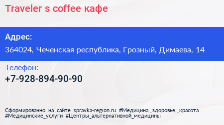 Traveler`s coffee, кафе по адресу 364024, Чеченская республика, Грозный, Димаева, 14 в дальнейшем Организация, размещена в следующих категориях: