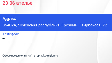 23/06, ателье по адресу 364024, Чеченская республика, Грозный, Гайрбекова, 72 в дальнейшем Организация, размещена в следующих категориях: