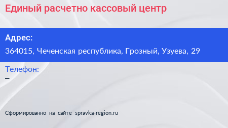 Единый расчетно-кассовый центр по адресу 364015, Чеченская республика, Грозный, Узуева, 29 в дальнейшем Организация, размещена в следующих категориях: