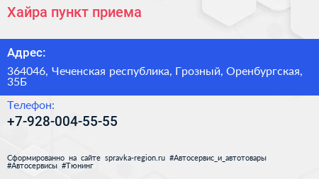 Хайра, пункт приема по адресу 364046, Чеченская республика, Грозный, Оренбургская, 35Б в дальнейшем Организация, размещена в следующих категориях: