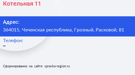 Котельная №11 по адресу 364015, Чеченская республика, Грозный, Расковой, 81 в дальнейшем Организация, размещена в следующих категориях: