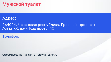 Мужской туалет по адресу 364024, Чеченская республика, Грозный, проспект Ахмат-Хаджи Кадырова, 40 в дальнейшем Организация, размещена в следующих категориях: