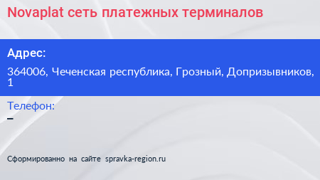 Novaplat, сеть платежных терминалов по адресу 364006, Чеченская республика, Грозный, Допризывников, 1 в дальнейшем Организация, размещена в следующих категориях: