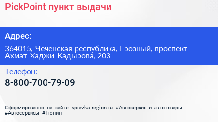 PickPoint, пункт выдачи по адресу 364015, Чеченская республика, Грозный, проспект Ахмат-Хаджи Кадырова, 203 в дальнейшем Организация, размещена в следующих категориях: