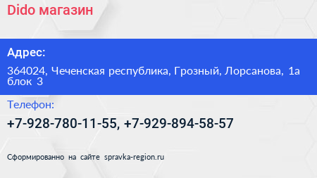 Dido, магазин по адресу 364024, Чеченская республика, Грозный, Лорсанова, 1а блок 3 в дальнейшем Организация, размещена в следующих категориях: