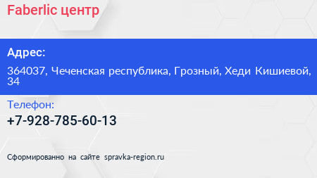 Faberlic, центр по адресу 364037, Чеченская республика, Грозный, Хеди Кишиевой, 34 в дальнейшем Организация, размещена в следующих категориях: