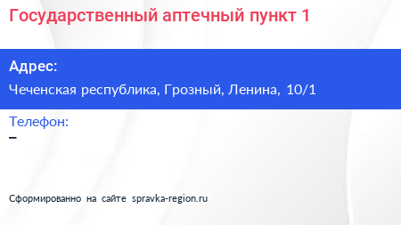 Государственный аптечный пункт №1 по адресу Чеченская республика, Грозный, Ленина, 10/1 в дальнейшем Организация, размещена в следующих категориях: